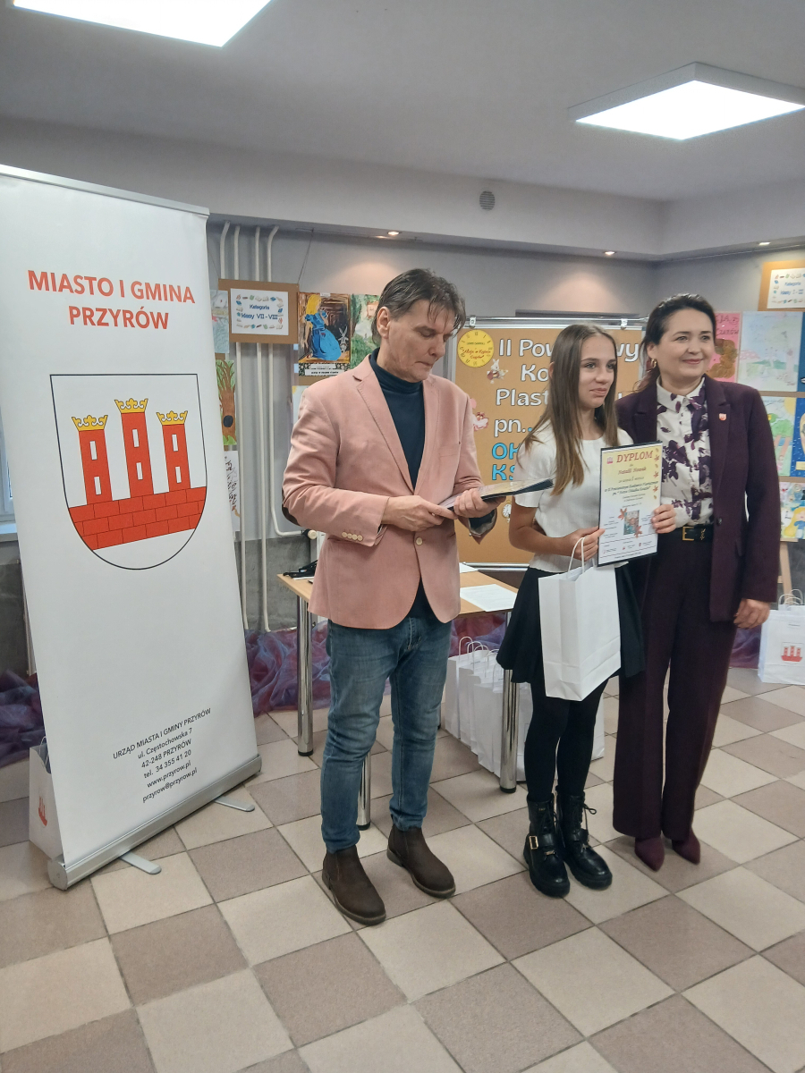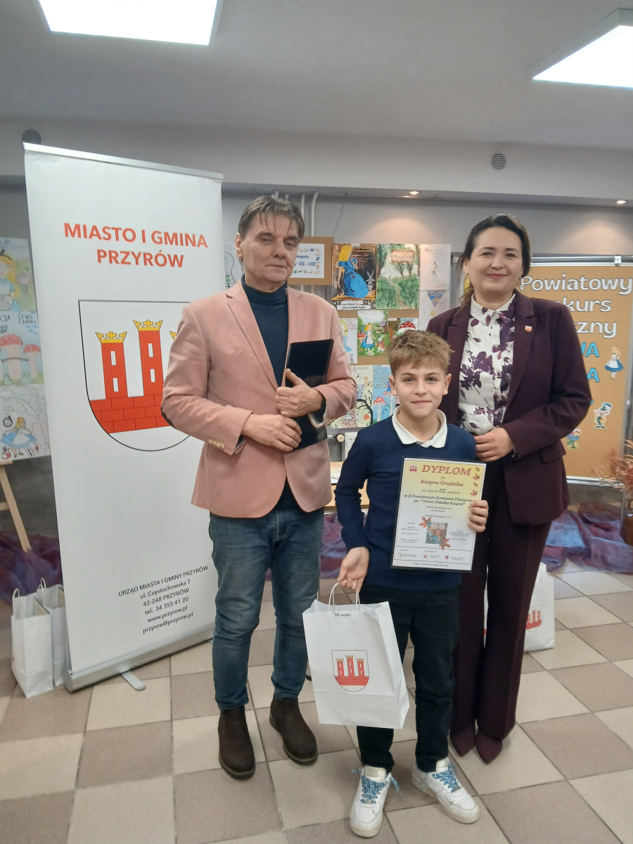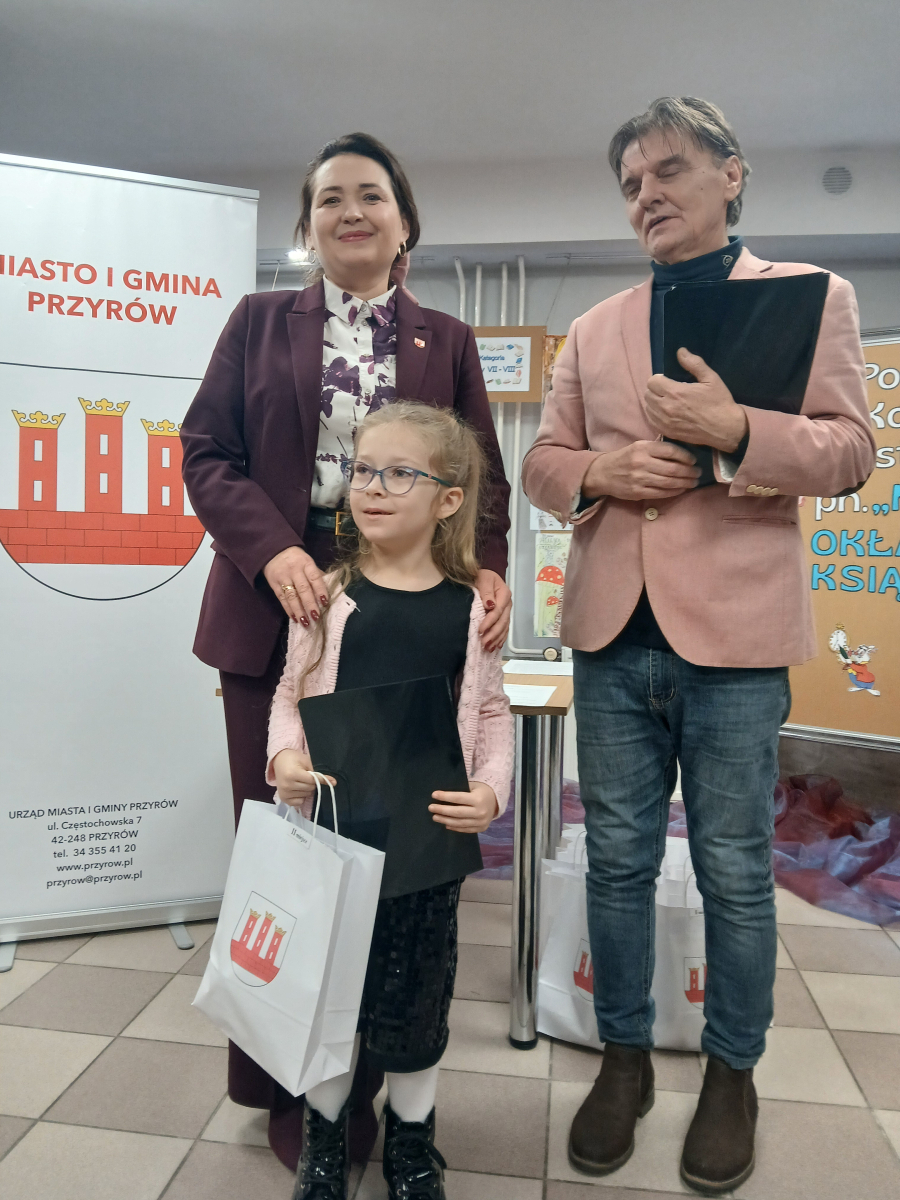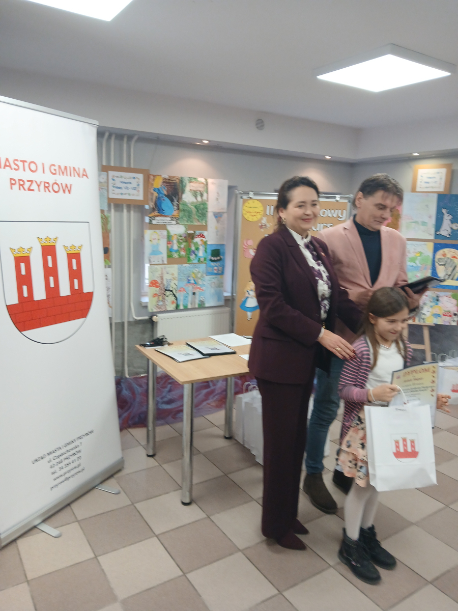 Wręczenia dokonali : Burmistrz Miasta i Gminy Przyrów – Anna Kowalska – Fert oraz Dyrektor Gminnego Centrum Kultury i Biblioteki w Przyrowie – Dariusz Grabowski.
