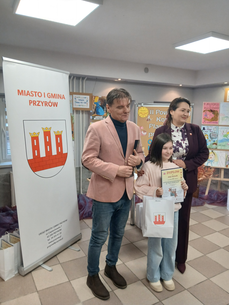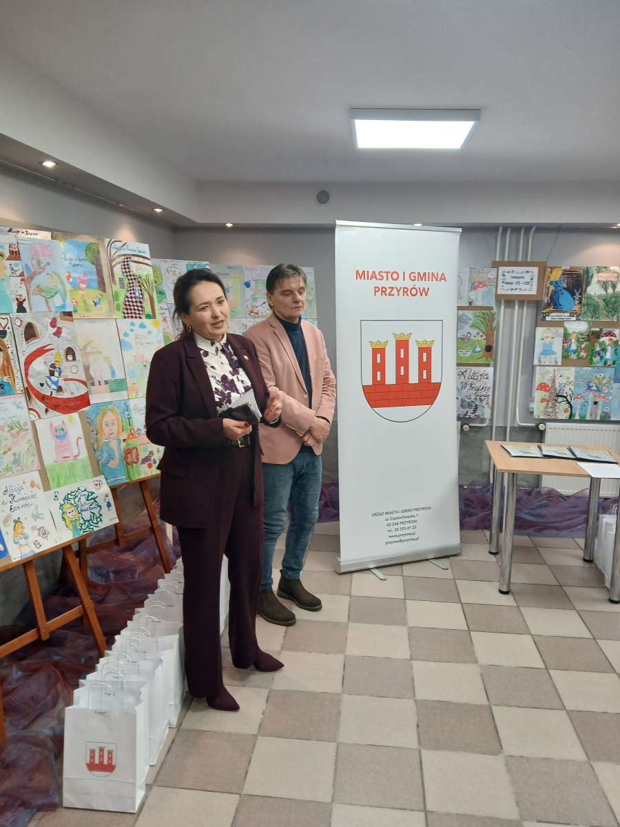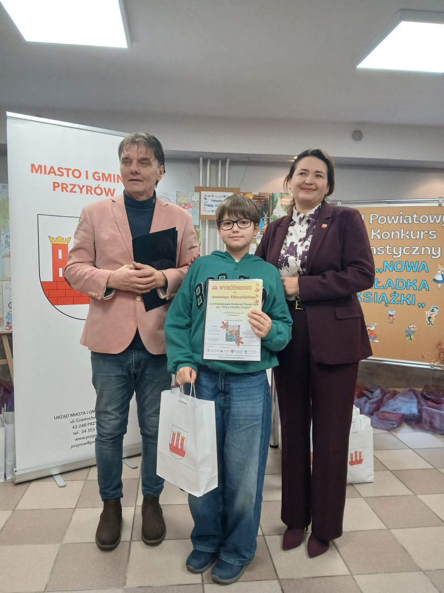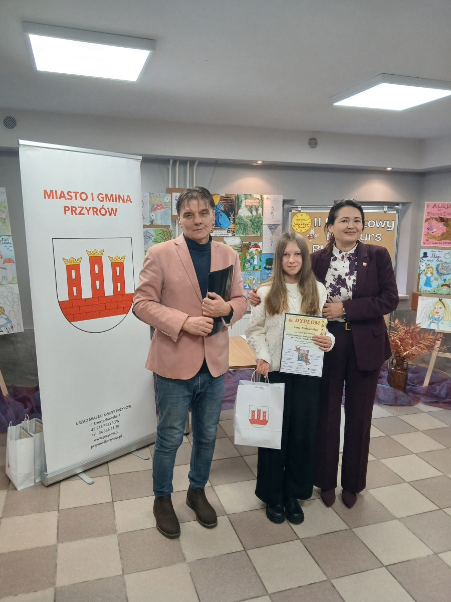 Wręczenia dokonali : Burmistrz Miasta i Gminy Przyrów – Anna Kowalska – Fert oraz Dyrektor Gminnego Centrum Kultury i Biblioteki w Przyrowie – Dariusz Grabowski.